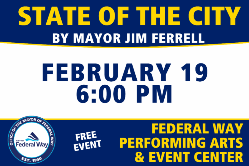 Join us for this year’s State of the City event! Hear an inspiring address from Mayor Jim Ferrell as we celebrate our community’s accomplishments and share an exciting vision for the future. This special evening is your chance to be part of the conversation shaping Federal Way’s journey forward. Let’s come together to honor our city and explore what’s ahead. Your presence will make the celebration truly memorable. Save the date and join us!
